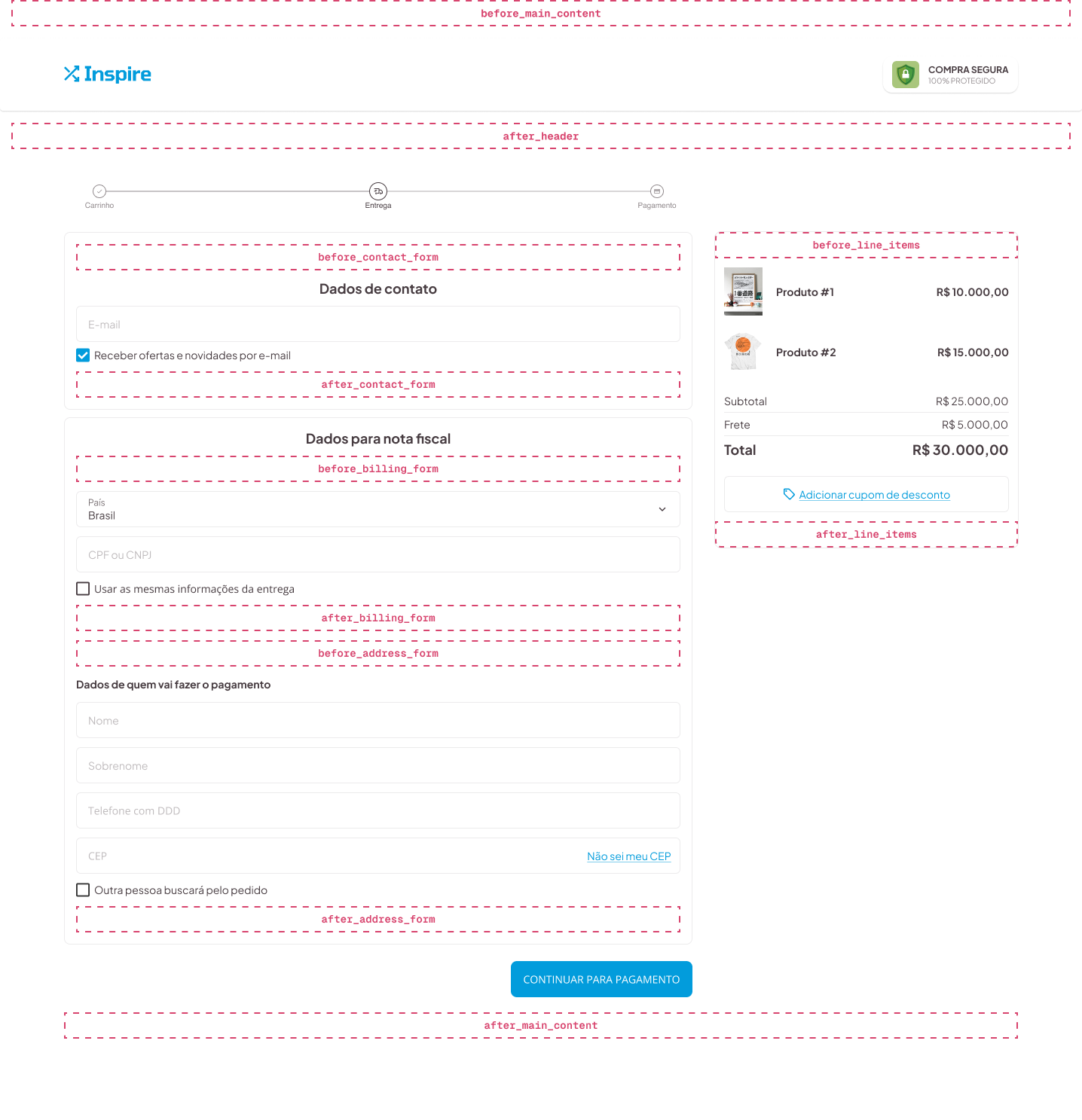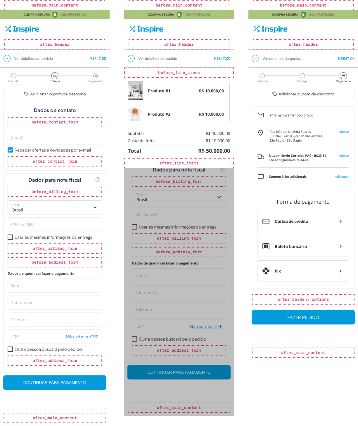 These are the slots that are available in checkout: